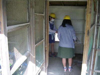 ウサギ小屋の主のために、今日も担当の飼育委員がえさくれや掃除をしてくれています。