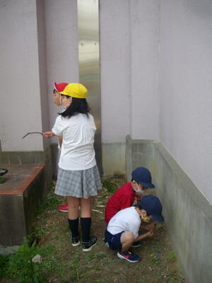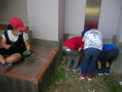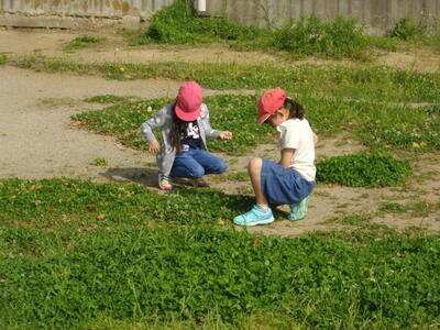 ダンゴムシを捕まえる子、四つ葉のクローバーを探す子、、、、。