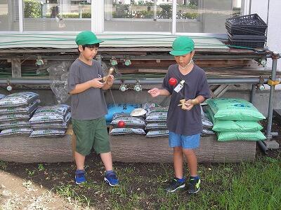 校務員のきめ細かな整備のおかげで、2学期の「けん玉広場」での活動が始まっています。