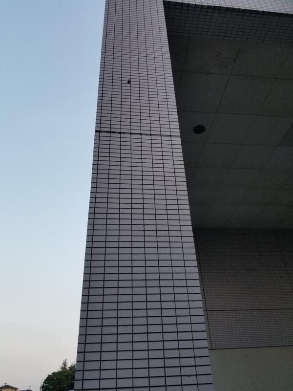 校庭に多くの木々があるにもかかわらず、セミが校舎にとまり鳴いていました。