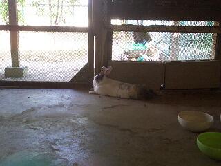 ウサギ小屋に行ってみました。この暑さの中、ウサギのマリンはどうしているのだろうかと。