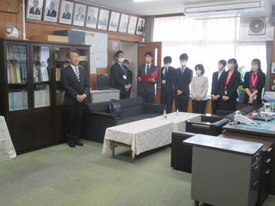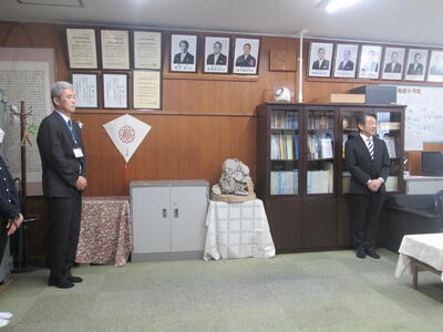 鹿間校長先生掲額式 投稿日時 : 2023/04/28 編集委員 カテゴリ: 離任式の後、鹿間校長先生の写真を校長室に掲げる掲額式を行いました。 歴代校長先生の写真の額に、鹿間校長先生の写真が並びました。