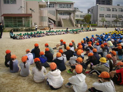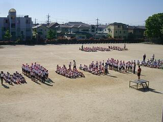 新入生が入学して1週間、初めて全校児童が校庭に集まりました。