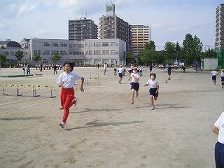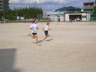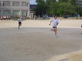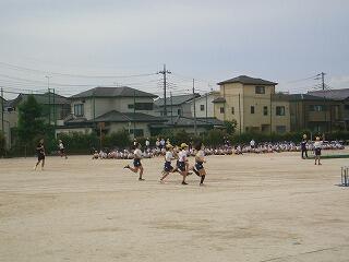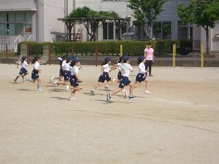 「体育」リレーの授業。よーいドン!