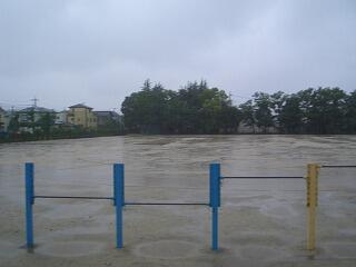 昇降口近辺で雨を避けながら