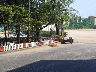 暑さの中、校務員の尽力で、2つの時計が見えるようになりました。
