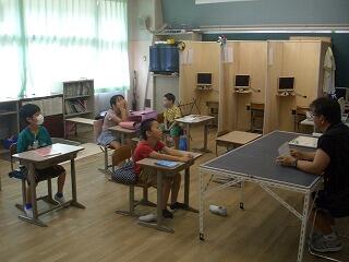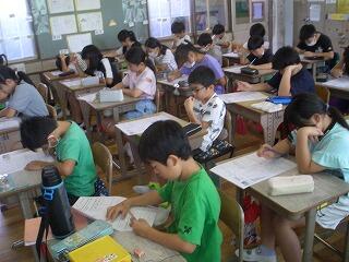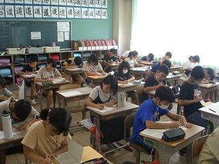 教室を訪問すると、音ひとつない教室がありました。問題練習に取り組んでいるクラスでした。