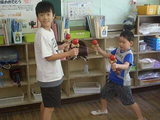 以下の画像は、「けん玉積み木」という遊びのものです。