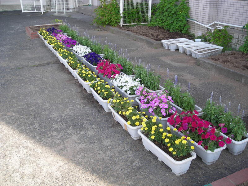 夏休みを前にして、栽培委員のみなさんが、少しでも日が当たらないところにプランターの花を移動しました。