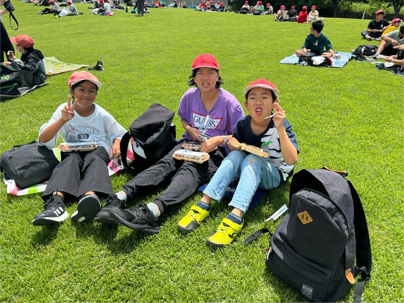 青空の下で、おいしくお弁当を食べました!