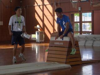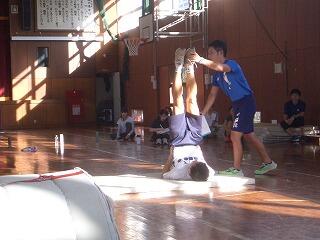 朝、体育館に行ってみると、いつもどおり(?)バスケットボールの練習が行われていました。