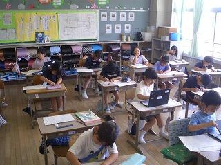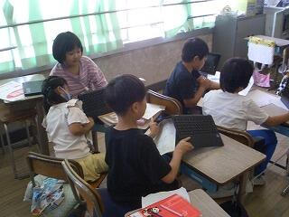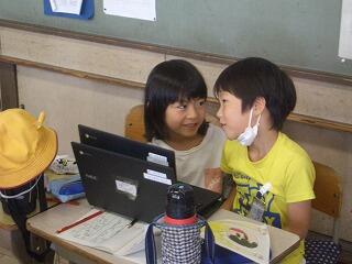 「町たんけん後の振り返り」、「あったらいいな こんなもの」などをタブレットを活用して実施しています。