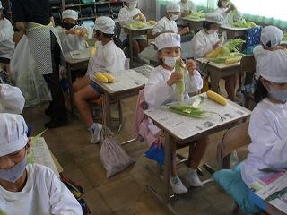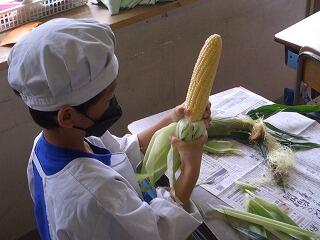 まなびや かすかべ(とうもろこしの皮むき:3年生)