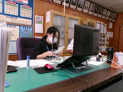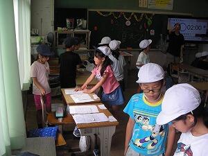 今日も6年生の代表委児童が「一日校長先生」に取り組みました。1・2時間目には、本日薬物乱用防止教室のために来校した方々への対応と、薬物乱用防止教室における校長挨拶も行いました。堂々とした態度は実に立派です。3・4時間目にはあおぎり賞の賞状作り、校内の教室訪問、そして検食を行いました。校長先生は授業はしないけど、学校でどんなことをやっているのか、少し知ることができたようです。