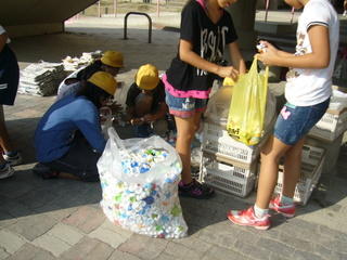 毎週木曜日の朝に資源回収をし、緑と赤い羽根募金を行っています。みんなで協力して頑張ります。