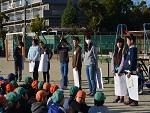 毎朝あいさつ運動をしています。学校外の交通指導員さんや保護者の方にも挨拶しましょう。