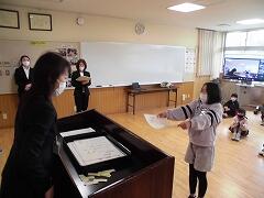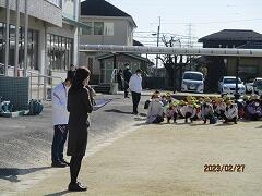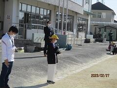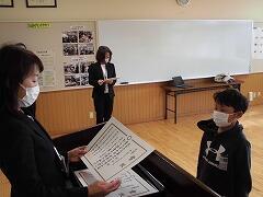 今日で令和4年度最後の登校になりましたが、今日も班長さんを先頭に安全に登校しました。修了式では、数年ぶりに全校児童が体育館に集まり、代表児童に校長先生から終了証が手渡されました。代表児童の言葉では、頑張ったことや来年に向けた抱負などを堂々と話していました。その後、各学級では担任の先生からコメントと共に、一人一人修了証が手渡されました。春休みを経て、4月さらに成長した姿で会えることを楽しみにしています。