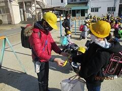 今日は、通学班編成が行われました。1年間、みんなが安全に気を付けて登校できるよう、引っ張ってきてくれた班長さんから新班長さんへとバトンが引き継がれました。これからも事故なく安全に登校できるよう一人一人が気を付けて、登下校していきましょう。班長さん今までありがとうございました。また、地区委員会の皆さま、編成ありがとうございました。
