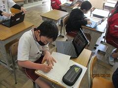5年生は国語の学習で、『提案しよう、言葉とわたし』という学習を行っています。事前に集めたアンケートや資料を、スライドにまとめ、一人一人原稿を作ったり発表の練習をしたりしています。素敵な発表、楽しみにしています。