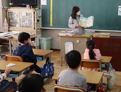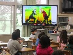 今日は、『庄和おはなし会』の方が来てくださり、5・6年生に本の読み聞かせをしてくださいました。今日の本は『歯いしゃのチュー先生』。ページめくるたびに、この後はどうなるのだろうと子どもたちは画面を見つめていました。今日で今年度の読み聞かせは最後になり、6年生にとっては小学校生活最後の読み聞かせとなりました。1年間本当にありがとうございました。