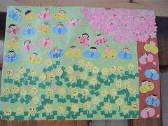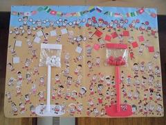 各学年で招待状やプレゼント、飾りつけなどを準備しました。1年生は6年生の似顔絵を、2~5年生は学校生活の思い出を壁画にしました。