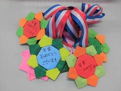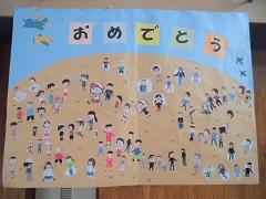 最後に、工夫された「オメデトウ」「アリガトウ」「ガンバッテ」の花文字が作られ、6年生からは「おおーっ!」の声と拍手があがりました。