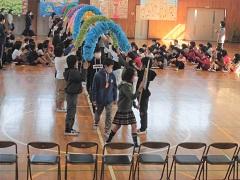 各学年の出し物が終わると、最後に伝統の「児童会旗」の引き継ぎが行われました。6年生の代表委員からは後輩へ励ましの言葉が、5年生の代表委員からは決意を表す言葉がありました。