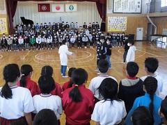 最後は、「ぷっかりくじら」という歌の替え歌で、6年生への感謝と励ましの気持ちを送りました。