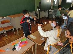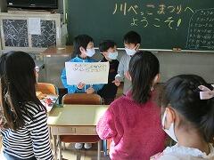 今日は2年2組が1年2組のお友達を招待して、『川辺っ子まつり』が行われました。(1組は昨日行いました。)この日のために2年生は魚釣りやアーチェリー・びゅんびゅんコマをはじめ、たくさんのお店の準備や、看板や景品・ルール説明の仕方や受け答えの練習など一生懸命準備してきました。その成果があって、どのお店からも2年生の堂々とした話し声と、1年生の笑顔や「もっとやりたい」「あっちのお店も行きたい」などのうれしそうな声がたくさん聞こえてきました。後片付けも最後まで一生懸命に取り組んだ2年生。とても立派でした。