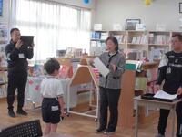 春日部市教育委員会からは、「先生の話をしっかり聞いて、一生懸命勉強すること」「お友達となかよく、元気に遊ぶこと」「給食をしっかり食べて、丈夫な体をつくること」の3つのことを守り、楽しい学校生活にすることのお祝いの言葉をいただきました。