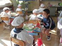 同じ11月生まれどうし、楽しく一緒に特別な給食を食べました。