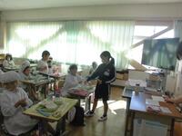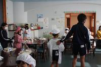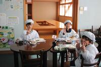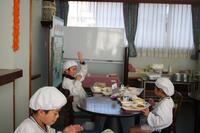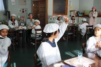 給食着に着替え、準備の仕方を確認した後、いよいよ配膳です。
