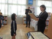 今朝は表彰朝会が開かれ、優秀な成績を収めた小渕っ子に賞状が伝達されました。