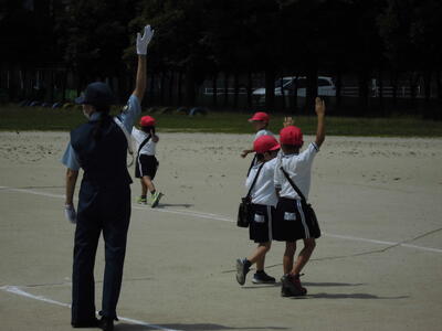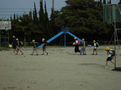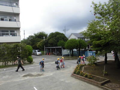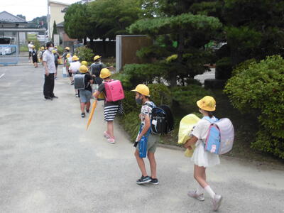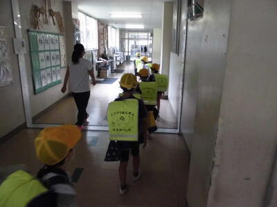 本日は一斉下校です。班ごとに、子供たちがもしもの時に駆け込む「こどもかけこみ110番の家」の場所を確認しながら下校しました。