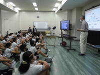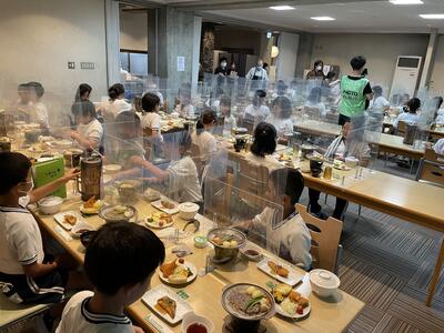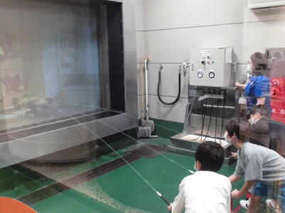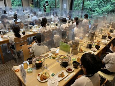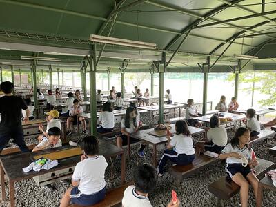 熱中症予防のため、外で昼食(お弁当)をとるのはやめて、学校に戻って冷房の効いた教室でお弁当を食べました。午後から、龍Q館・首都圏外郭放水路の見学をおこないました。