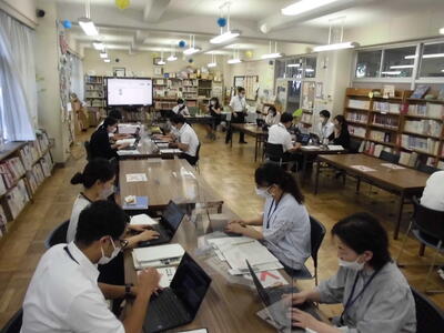 今日は授業研究会。先生たちが、よりよい授業の実現のために互いに研修を深めます。