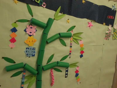 ( ↓ 季節の掲示は7月に向けて、模様替えの途中です。)
