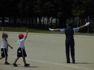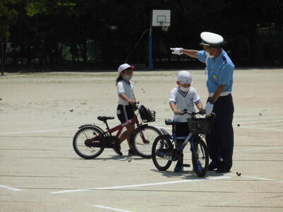 本日は、春日部警察署や春日部市役所、交通指導員さんに来校いただき、交通安全教室をおこないました。