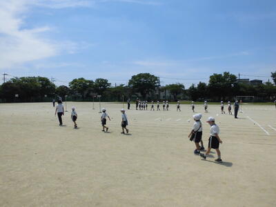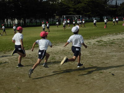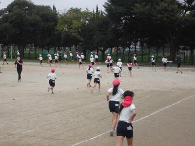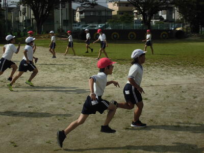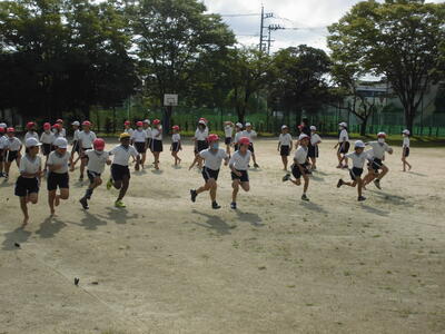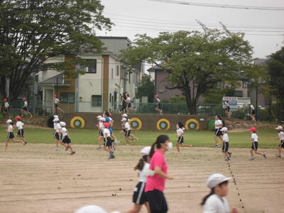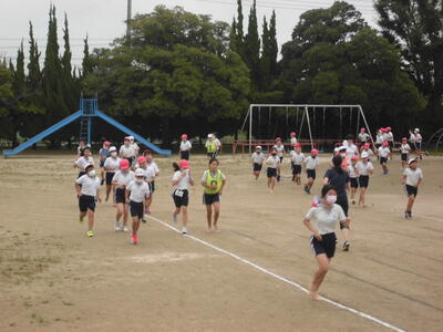 今日の朝は、さわやかタイム。全校で運動する時間です。朝の、まだ気温があがらないうちに、また吹く風もさわやかあ時間帯に、みなで校庭を駆けました。