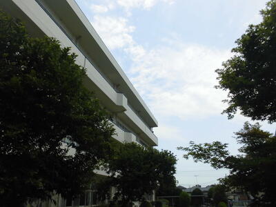 ( ↓ 今日の学校。雲はありますが、また暑くなりそうです。みさなま、熱中症にはじゅうぶんお気をつけ下さい。)