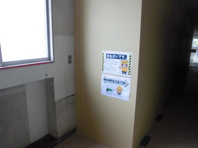 ( ↓ 学校では先週から、トイレ改修工事が始まっていて、学校敷地内に立ち入り禁止区域が設けられたり、駐車スペースがせまくなったりしています。)