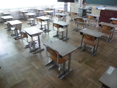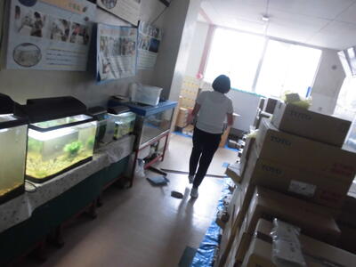 今日は土曜日で、学校はお休みです。学校では、トイレの全面改修工事のための準備が進んでいます。
