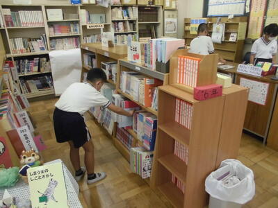 毎週木曜日は、図書館支援員さんの来校日、また保護者の方の図書ボラティアさんの活動日です。
