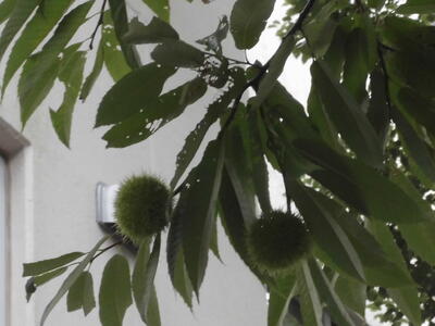 学校には、クリの木があり、夏が終わるとたくさんの実が落ちます。