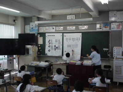 1年生の算数の時間です。先生の問いかけにたくさんの手があがります。