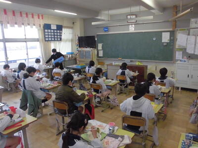 本日、春日部市教育委員会の方を講師にお招きし、3年生の「かすかべ郷土かるた教室」を行いました。春日部の郷土かるたについて説明を聞いた後、ジャンボかるたでかるた取りをおこないました。