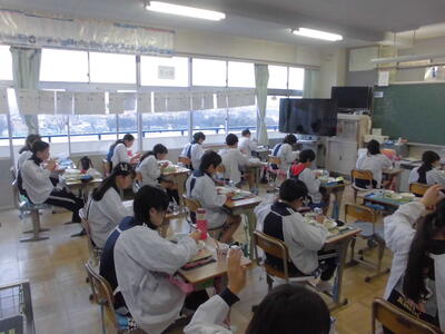 感染症拡大防止のため、現在も班を作らずに前を向いて、黙って食べています。