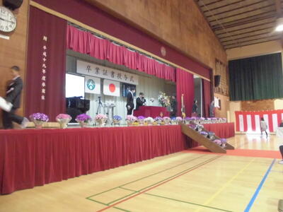 (卒業証書授与です。壇上で校長先生から一人一人が受け取ります。)