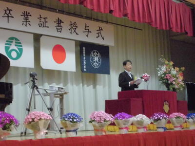 (式が終わり卒業生が退場します。大きな拍手で見送られます。卒業生は最後まで立派な態度でした。)