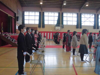 (最後の校歌です。思いをこめて大きな声で歌いました。)